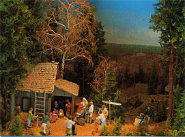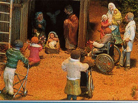 Aufruf zu Frieden und Völkerverständigung. Albert Fehrenbacher, 1911 in Schramberg geboren, war tätig u.a. im Völkerkundemuseum in Berlin als Restaurator. Er kam 1944 in russischer Gefangenschaft in das berüchtigte Lager Kujbischew, in dem im ersten Winter von den 2.200 Gefangenen 1.550 gestorben sind. Dort begann er, für das Lager eine Krippe zu bauen, die 2mal zu Weihnachten aufgebaut werden durfte und dann verboten wurde. Bei seiner Entlassung gelang es ihm, die Figuren aus dem Lager zu schmuggeln. 1949 aus der Kriegsgefangenschaft entlassen, begann er in Berlin Krippen zu bauen. 1965 ging Albert Fehrenbacher mit einer Krippenausstellung nach USA um sie dort auszustellen. Nebenbei arbeitete er zuerst im Brooklyn-Museum und dann im Corning-Museum in New York. In seiner Freizeit baute er die Völkerkrippe als Miniaturkrippen. Nach seiner Rückkehr aus den USA 1979 bildeten sie, zusammen mit der in Gefangenschaft gefertigten Lagerkrippe, den Grundstock der heutigen Krippenausstellung. |